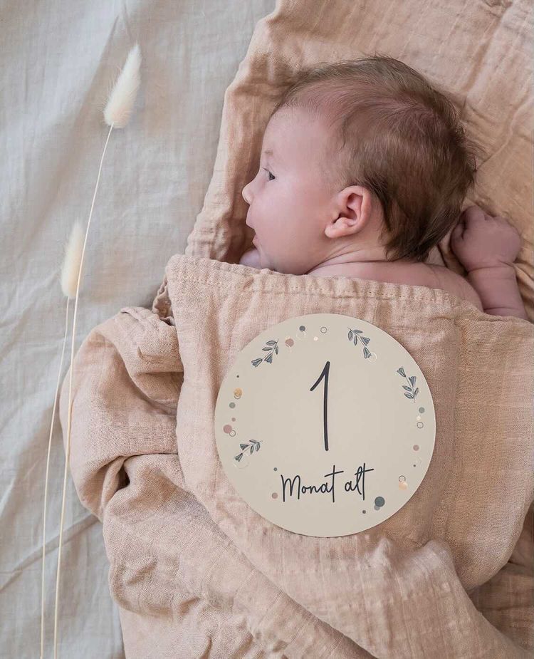 Dezent illustrierte Meilensteinkarten für die schönsten Erinnerungsschnappschüsse.