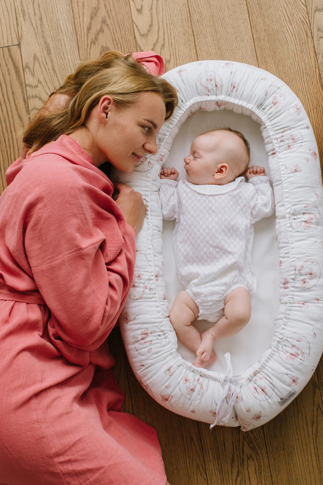 Das Babynest kann auf dem Sofa, in der Wiege, auf dem Doppelbett oder auf Reisen genutzt werden