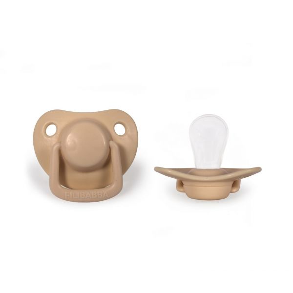 Ein 2er-Pack mit feinen Schnullern, hergestellt mit symmetrischem Schnullerkopf aus weichem und haltbarem, klarem Silikon.