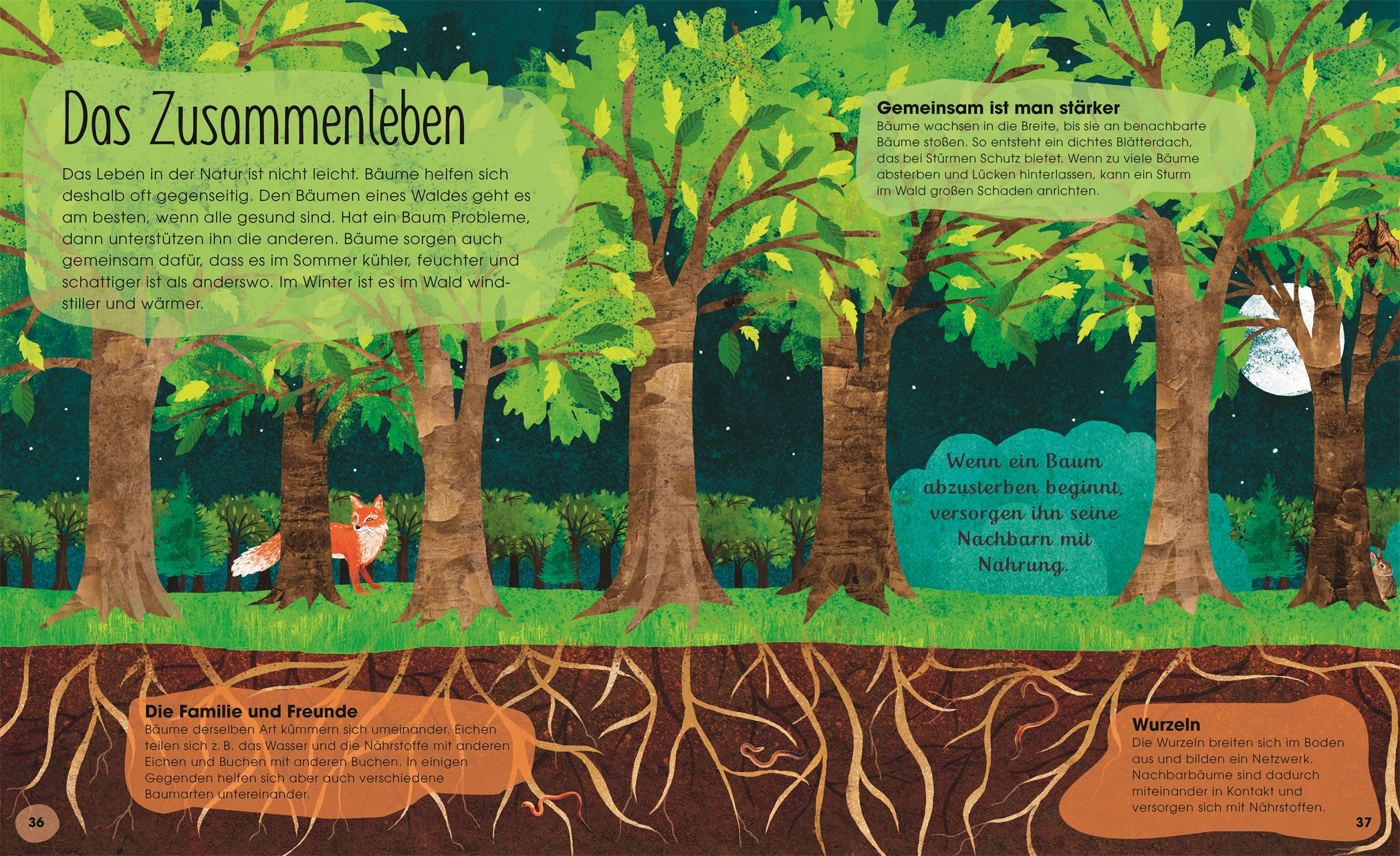 Die faszinierende Welt der sanften Riesen der Wälder entdecken! Mit diesem stimmungsvoll illustrierten Kinderbuch reisen Kinder vom riesigen Wurzelwerk bis hinauf in die hohen Baumkronen. Von den Lebensräumen über die wichtige Rolle der Bäume und Wälder für den Menschen bis zum Ökosystem und Klima – hier erfahren junge Naturliebhaber alles, was sie jemals zum Leben der Bäume wissen wollten. Dazu gibt es verblüffende Fakten zum Beispiel zur Sprache der Bäume