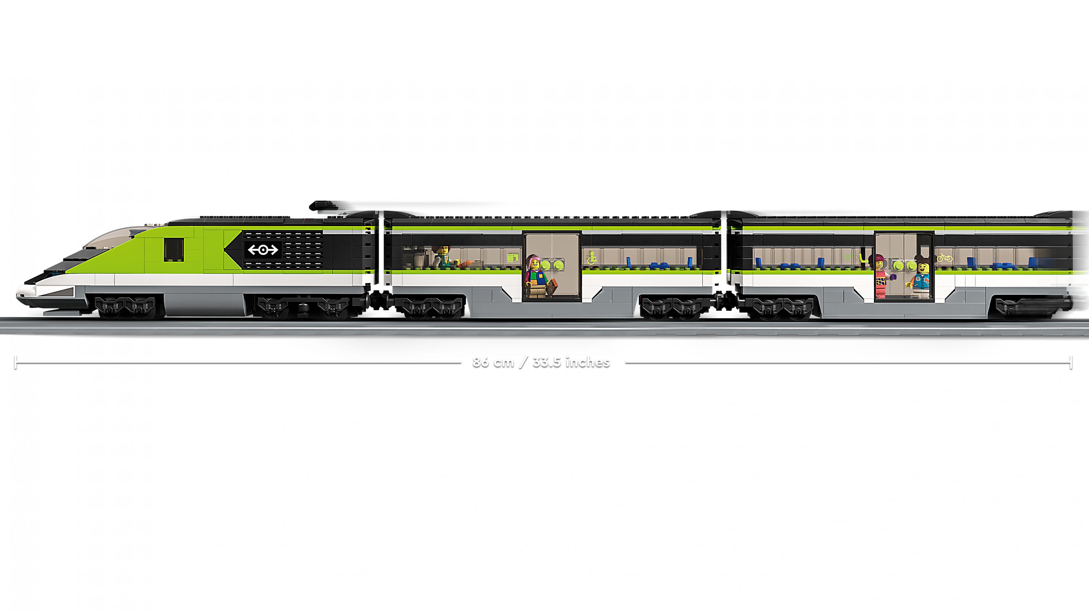 Das LEGO® City Set „Personen-Schnellzug“ (60337) beinhaltet eine ferngesteuerte Hochgeschwindigkeitslok mit funktionierenden, abblendbaren Scheinwerfern, einen Speisewagen, einen Personenwagen, einen Bahnsteig, 24 Schienensegmente und sechs Minifiguren für unzählige Rollenspiele und Eisenbahnabenteuer. Die beeindruckende Lok ist per Fernbedienung oder durch die LEGO® Powered Up-App steuerbar.